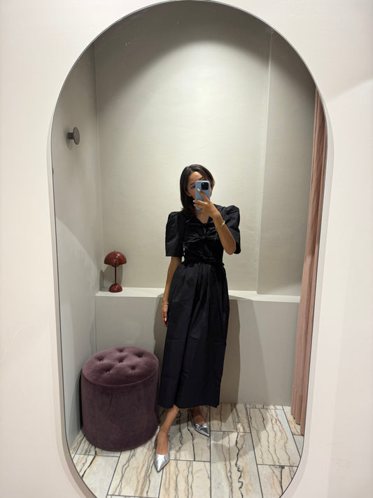 GANNI Stretch Cotton Tie Strap Midi Dress