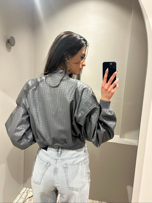 Rotate Cropped Braided Jacket Grey