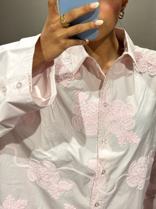 GANNI Printed Stretch Cotton V-neck Pocket Blouse