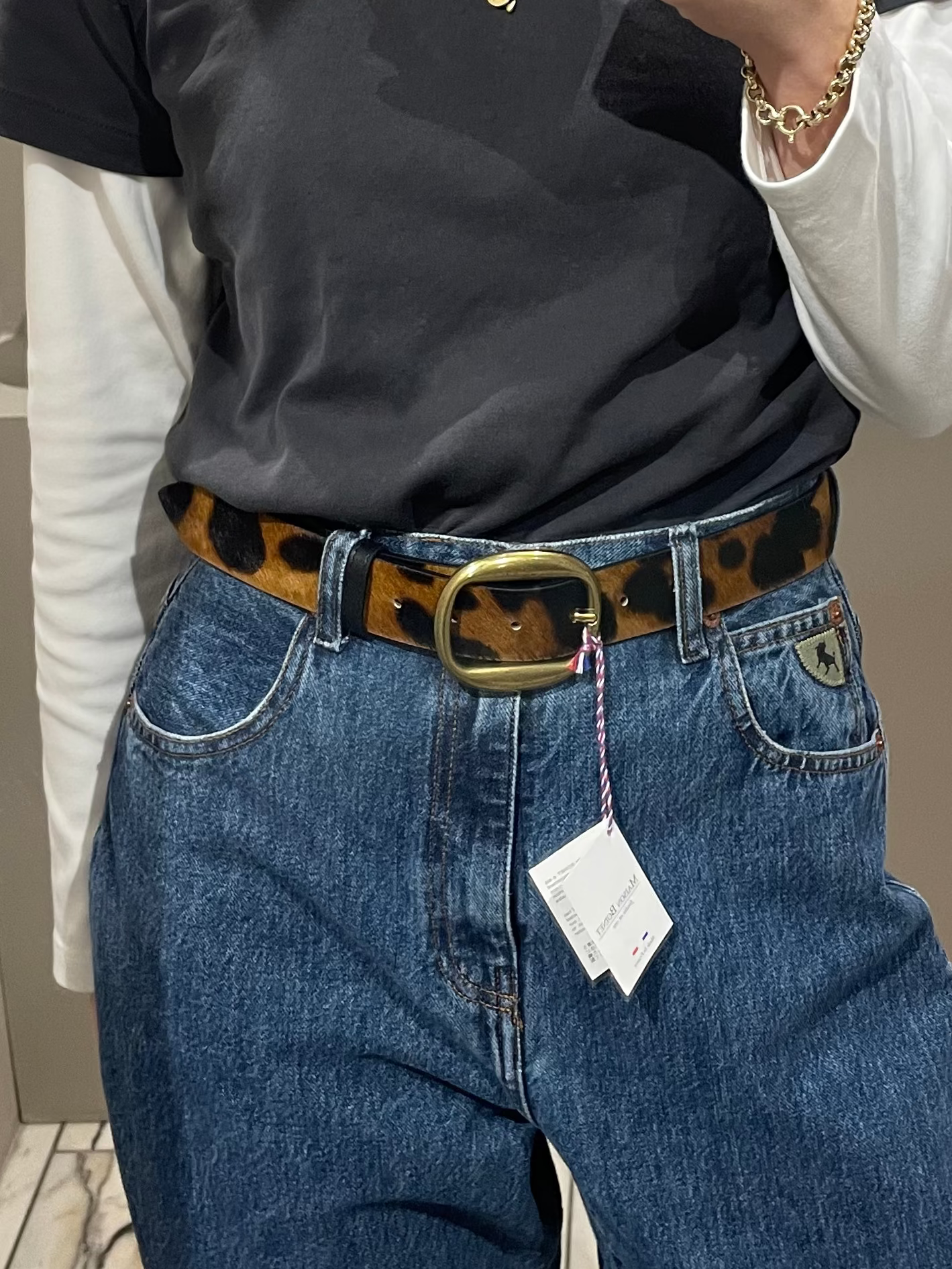 Gürtel mit Leopardenmuster und goldener Schnalle.