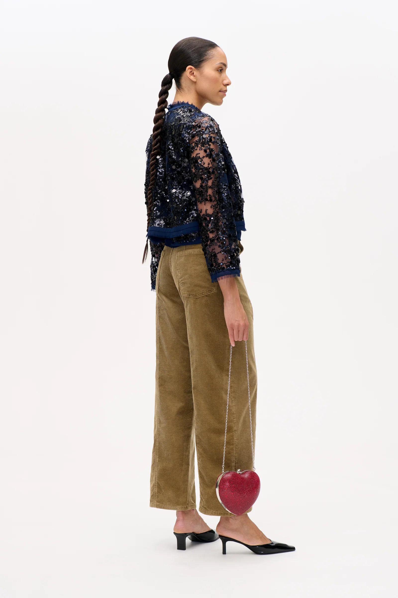 Die Tasche ist ein herzförmiges Statement-Piece aus schimmerndem Metall, komplett mit funkelnden Strasssteinen besetzt. Ihr gefüttertes Innenleben und der praktische Schnappverschluss verbinden Funktion mit Glamour. Dank des abnehmbaren Kettenriemens lässt sie sich als Clutch oder Crossbody tragen und passt perfekt zu eleganten Abendlooks oder als Eyecatcher zu lässigen Outfits!