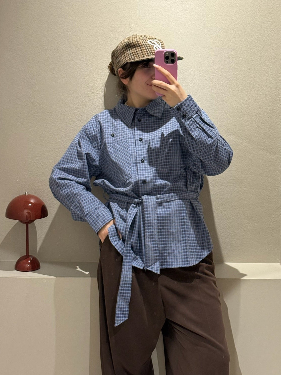 Die Bluse aus weichem und dickem Bio-Baumwollflanell hat eine boxy Passform mit überschnittenen Schultern und einem abnehmbaren Bindeband in der Taille, so dass die Silhouette nach Belieben angepasst werden kann.