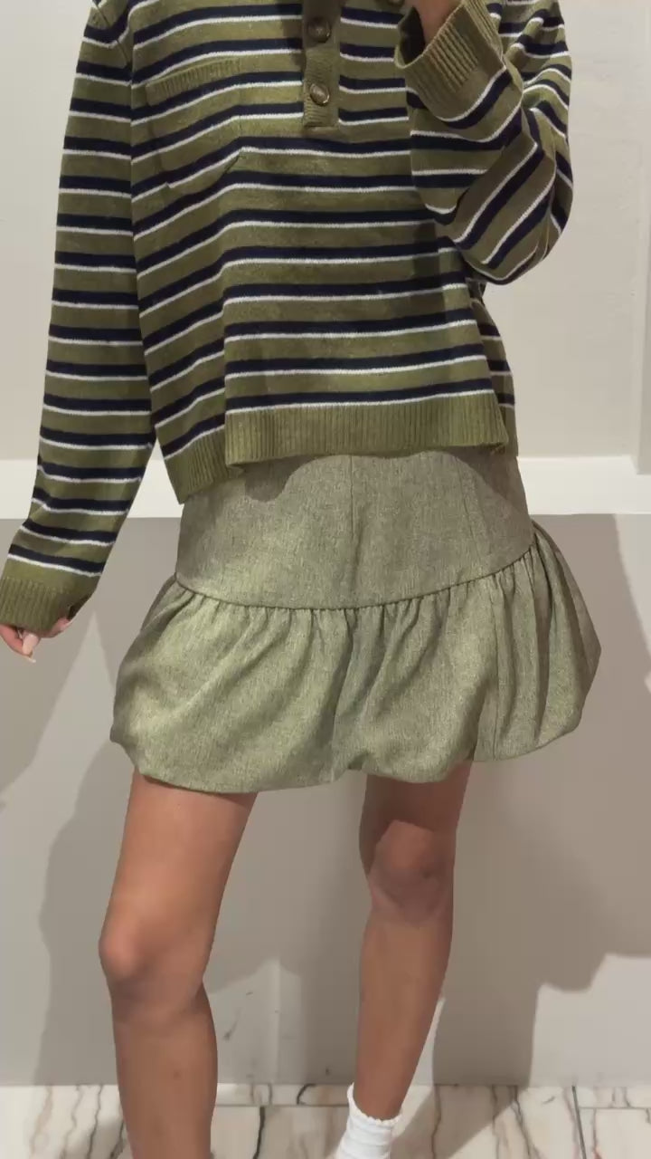 Der Rock Sikita ist ein auffälliges Stück aus klassischem Tweed mit einem modernen Ballonsaum. Der Rock hat eine taillierte Silhouette mit zusätzlichem Volumen am Saum – eine frische Interpretation zeitloser Schneiderkunst. Kombinieren Sie es mit einem Hemd oder Strick zu einen eleganten Bürolook.