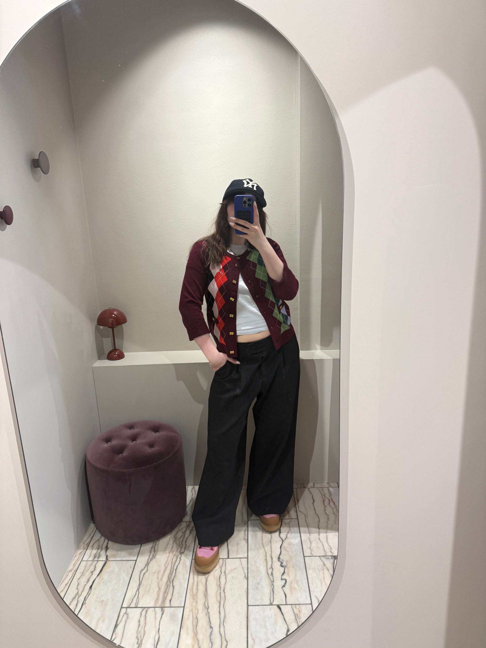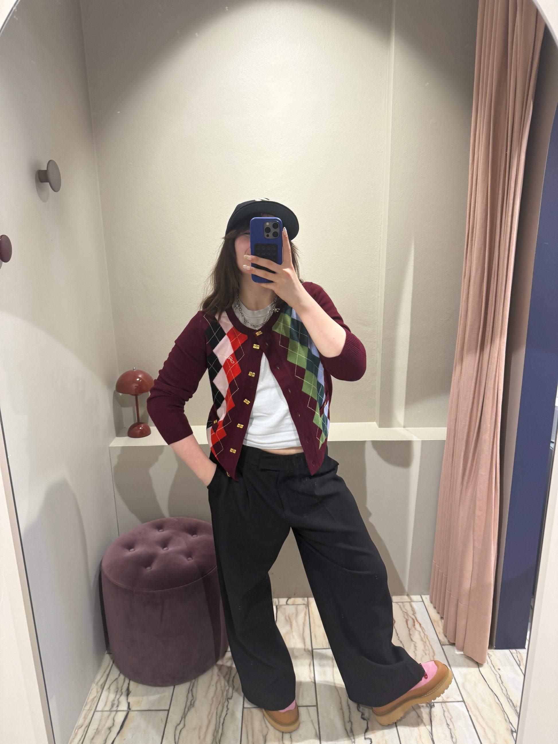 Cardigan mit Karo-Muster in wunderschönem Burgundy.