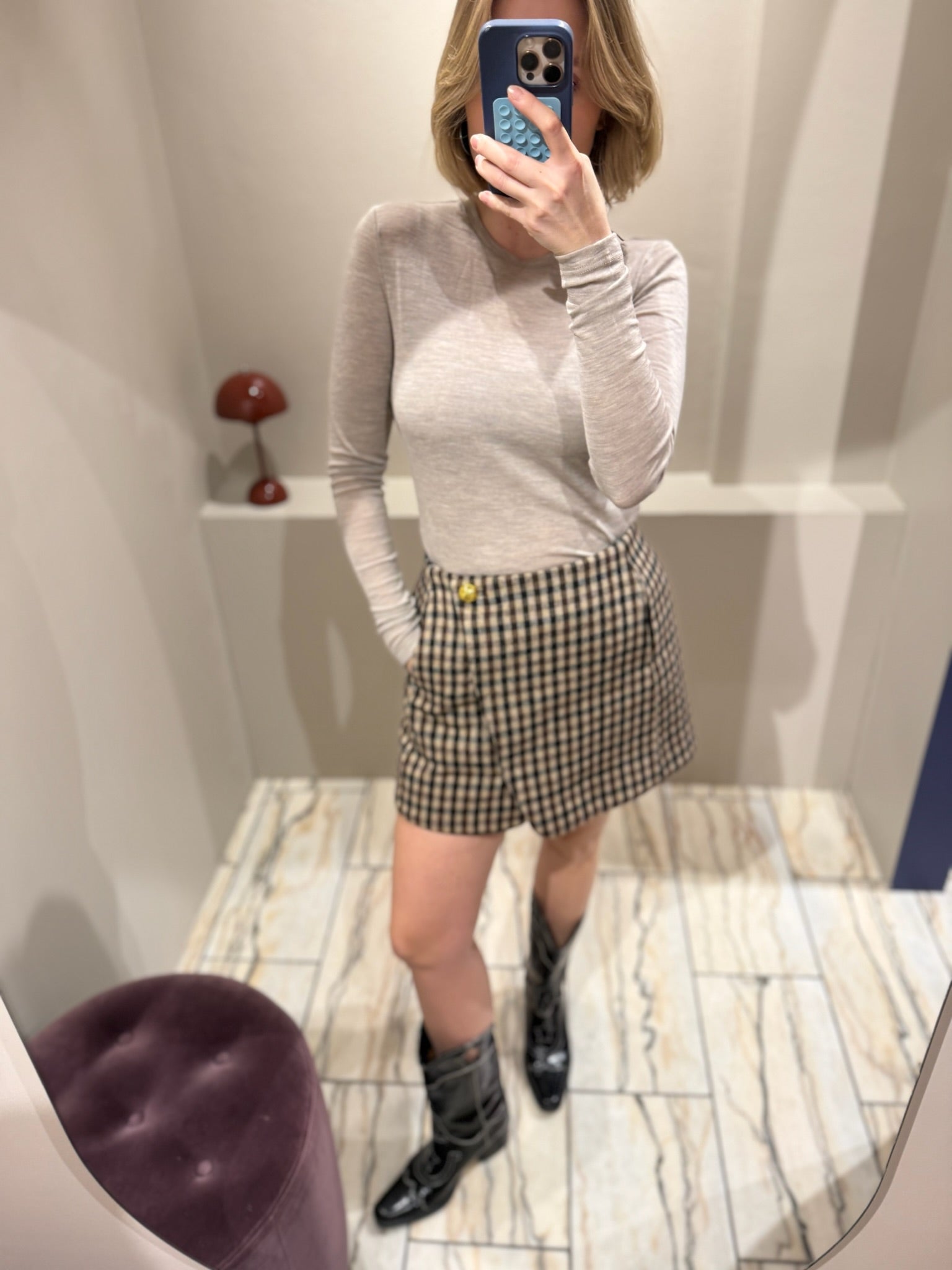GANNI Check Wool Mix Skirt