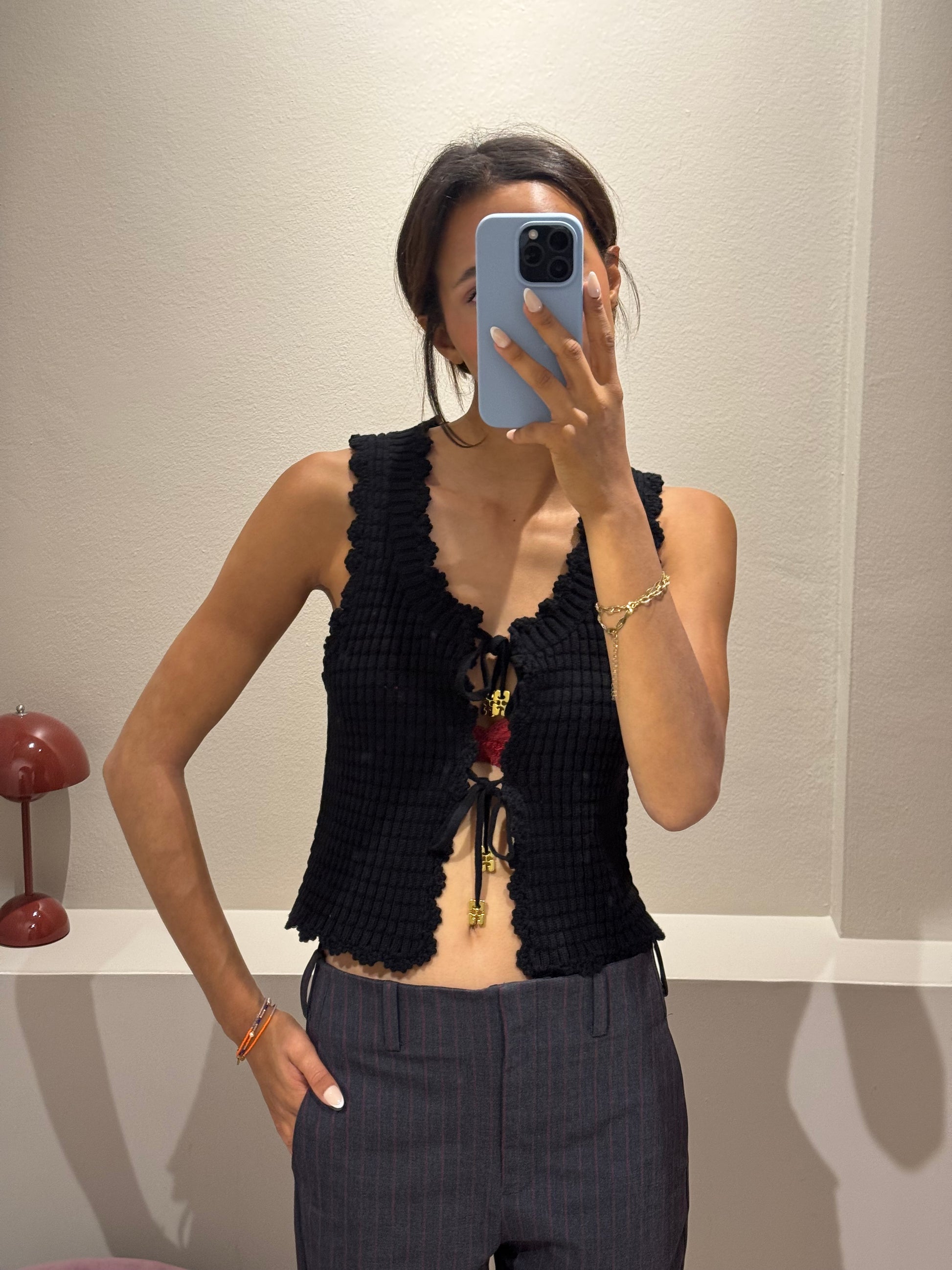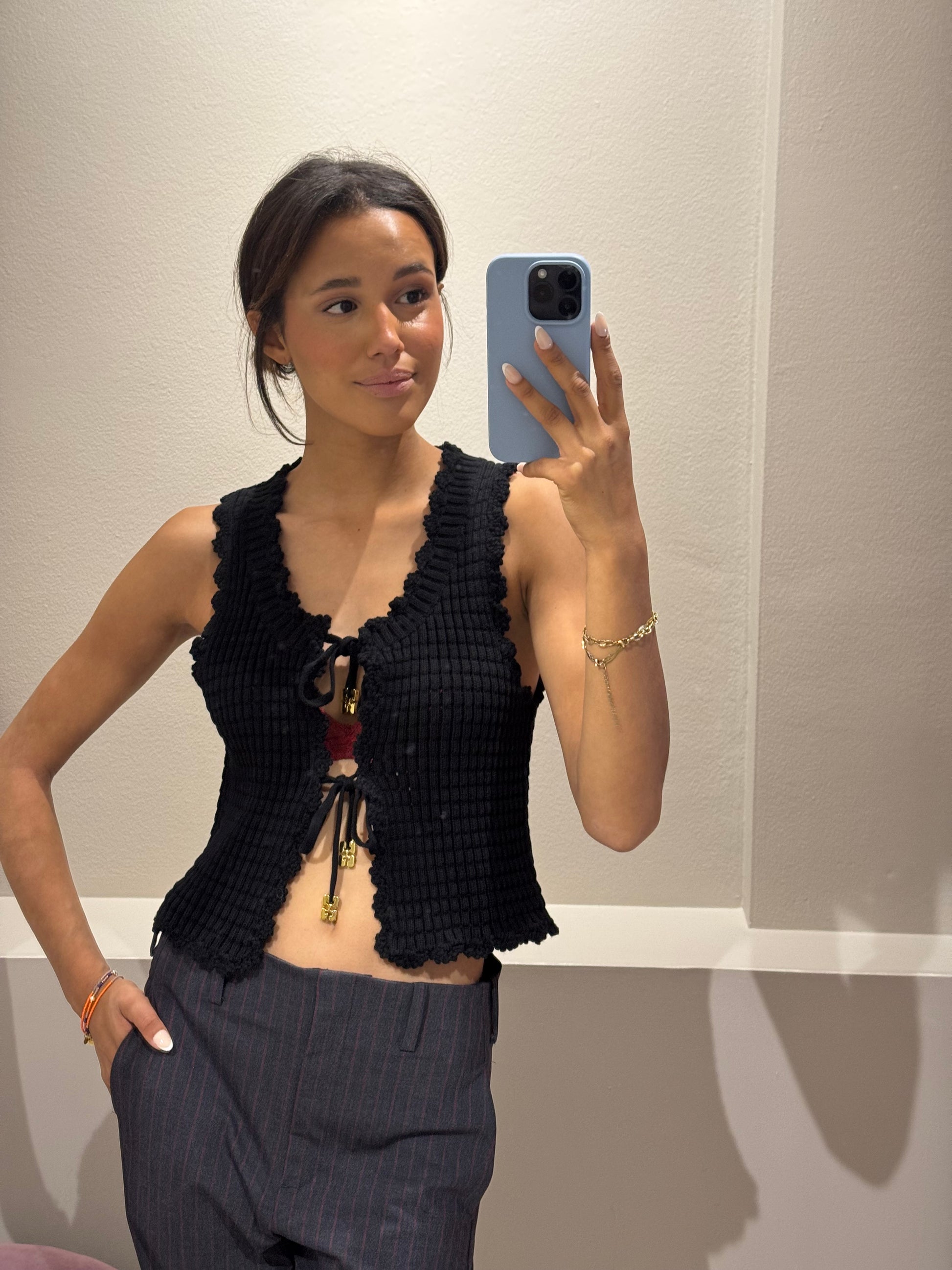 Wunderschöne gehäklete Weste zum Binden.