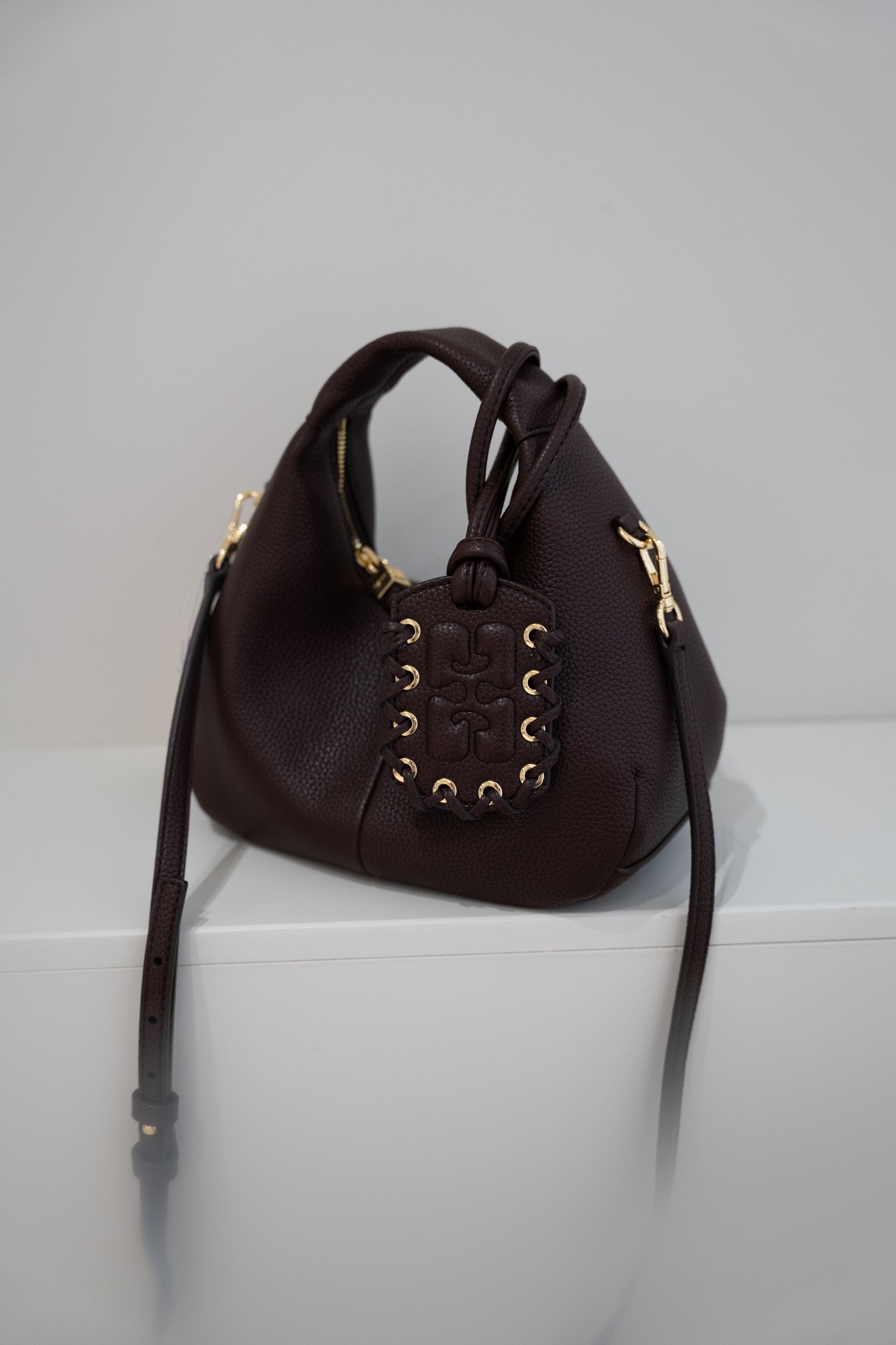 Diese Tasche verfügt über einen Tragegriff oben, einen verstellbaren und abnehmbaren Riemen und einen Reißverschluss. Die Tasche hat einen Spiegelanhänger und eine Innentasche.