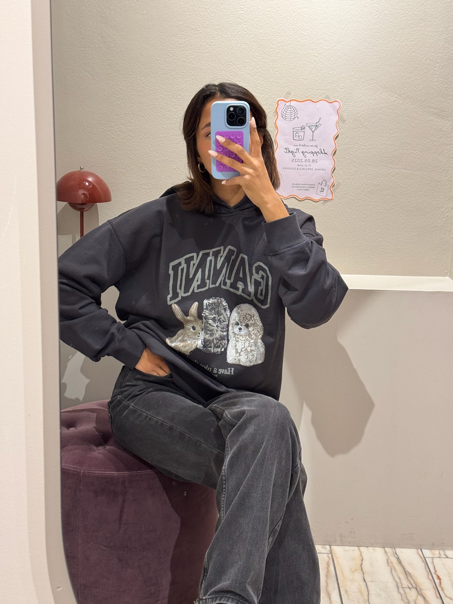 Oversized Hoodie aus Terry Cotton mit niedlichem Tier print.
