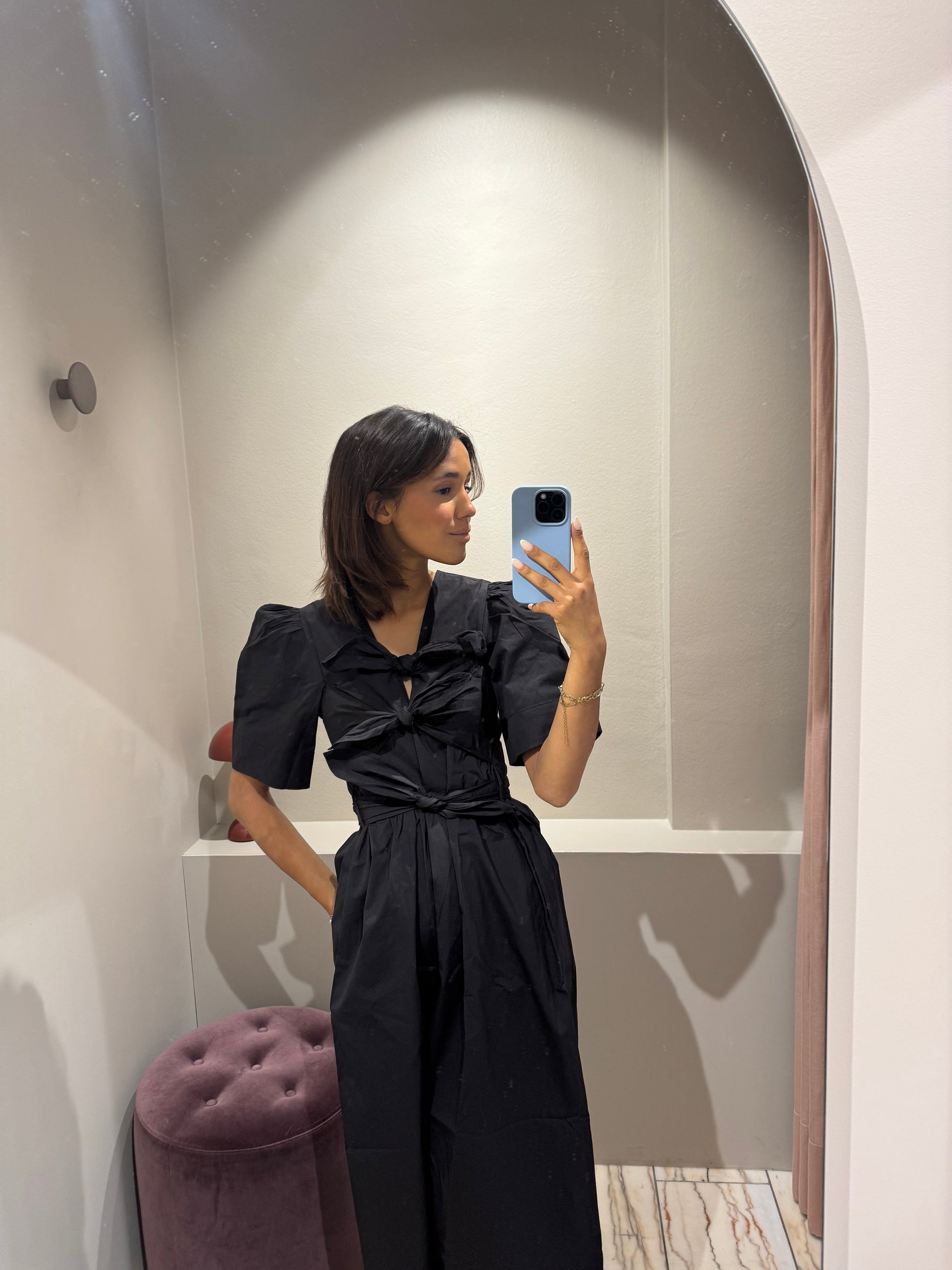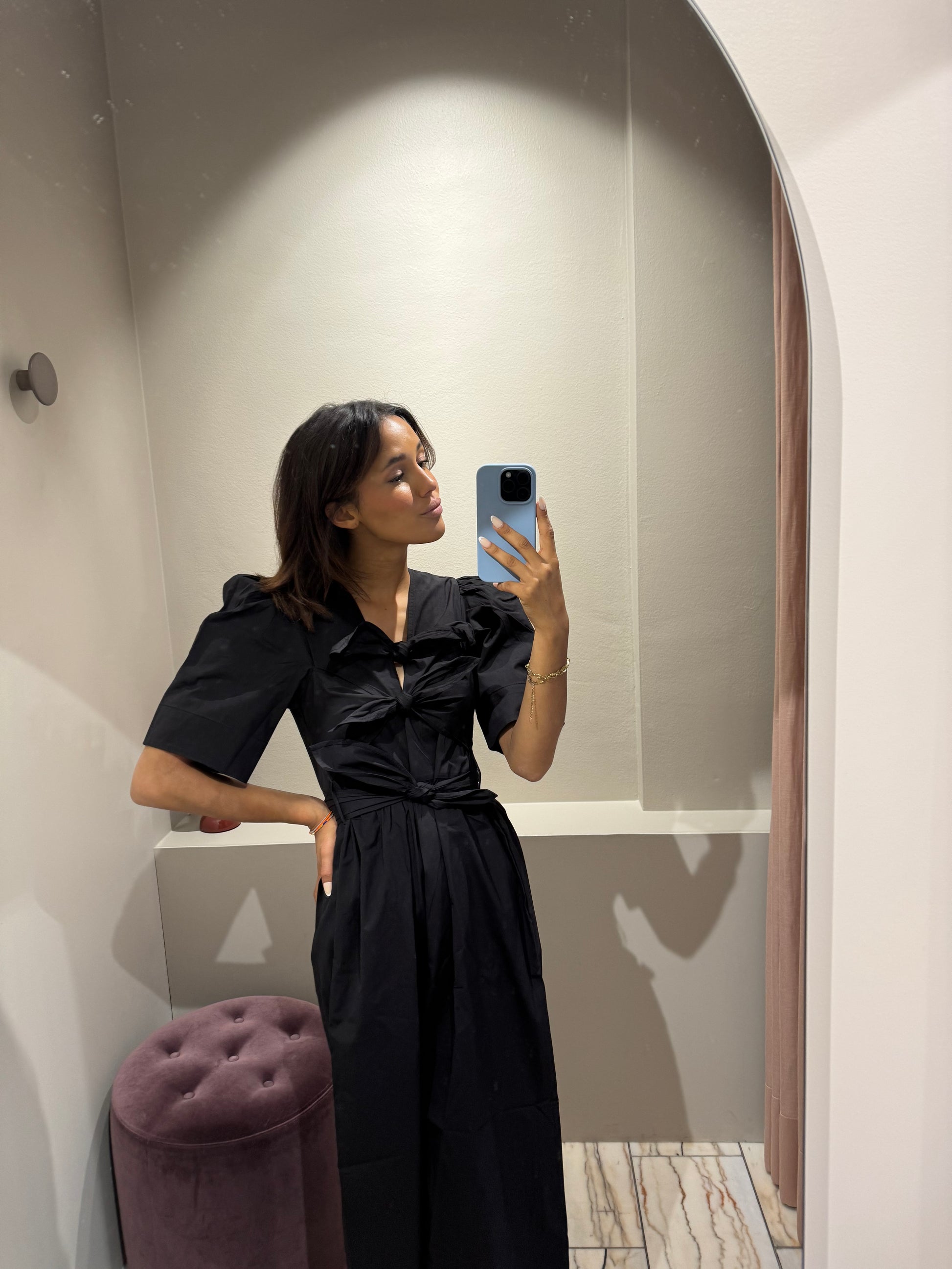 GANNI Stretch Cotton Tie Strap Midi Dress