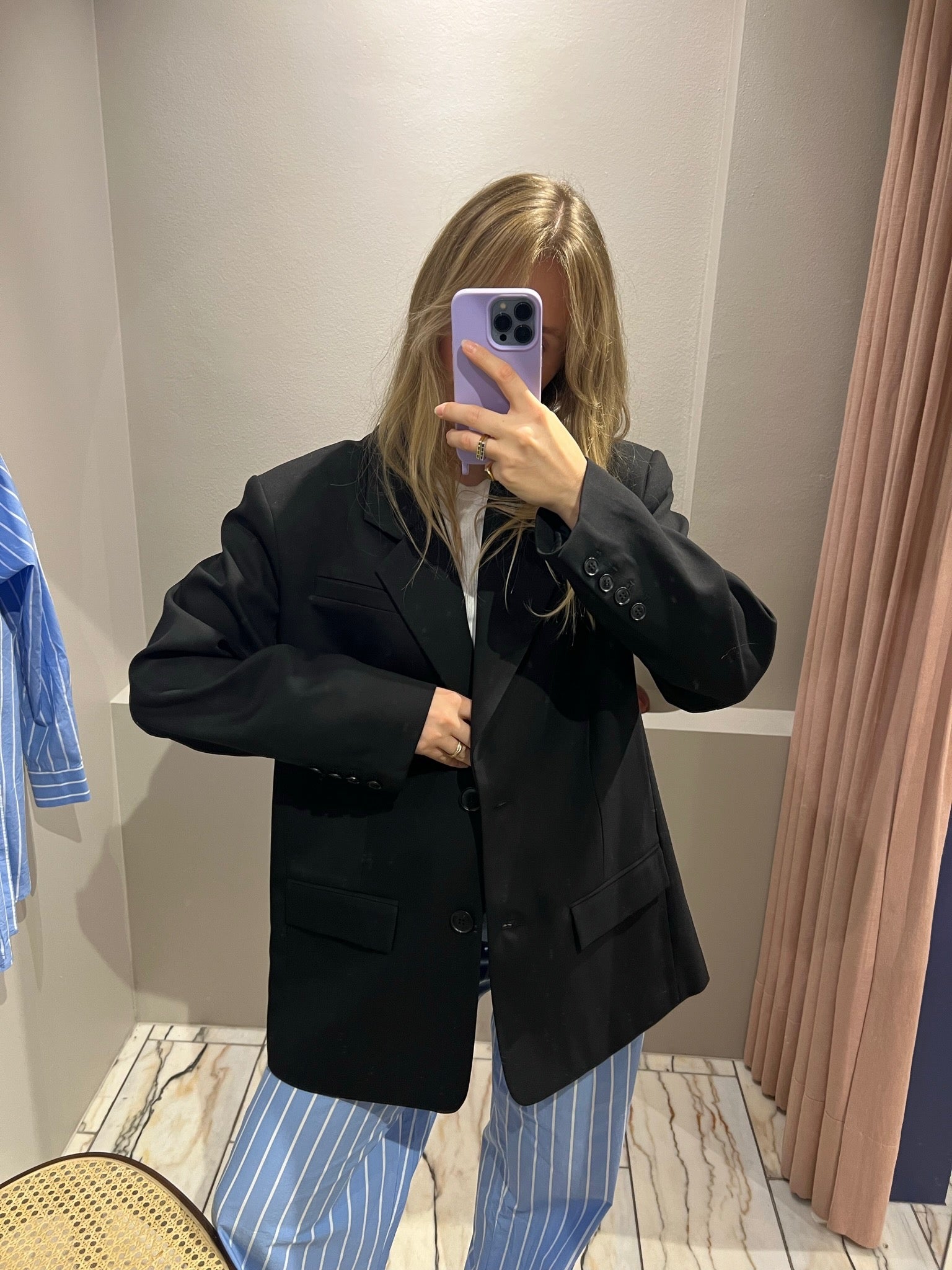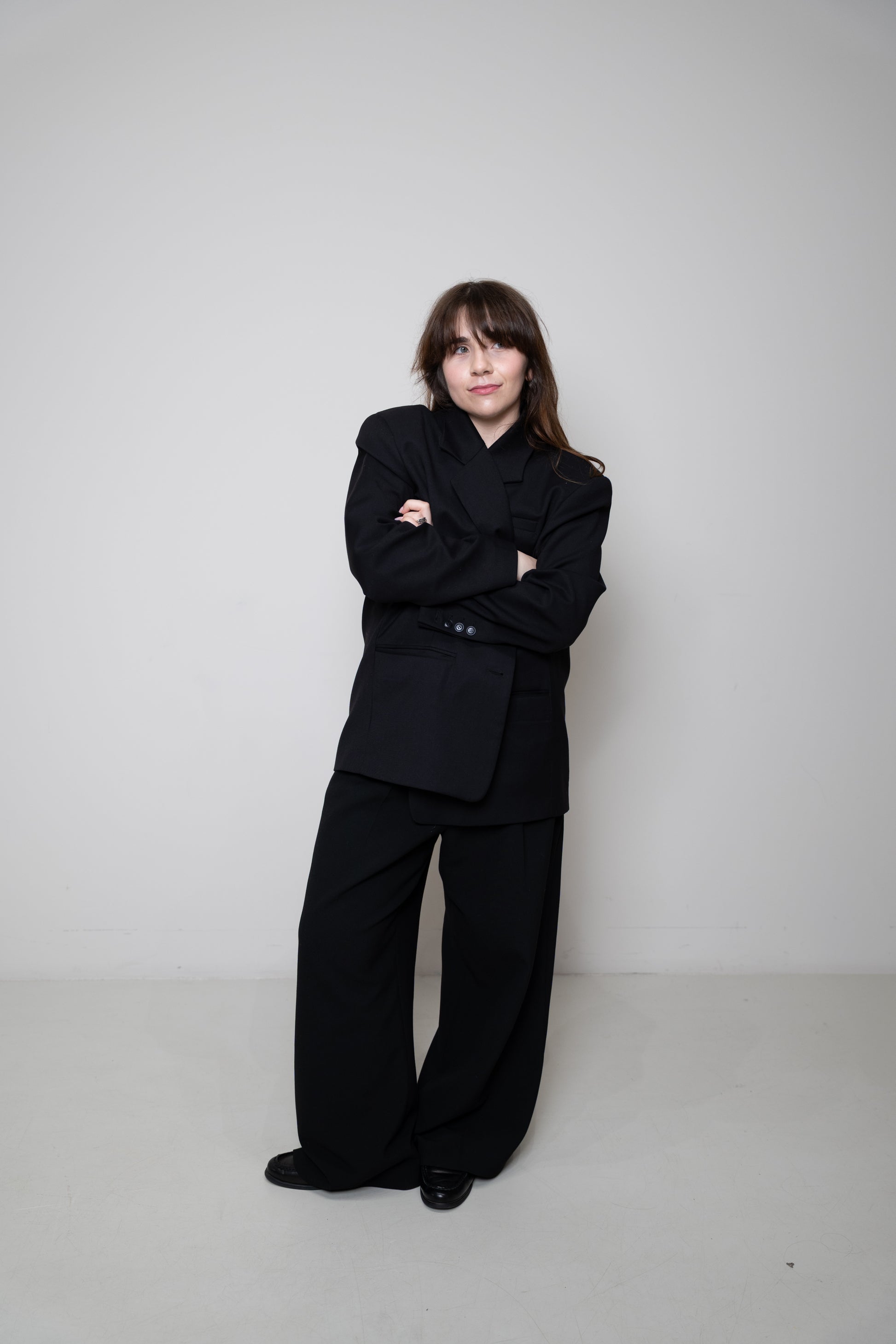 A single-breasted, longline blazer in a trendy oversized fit. With shoulder pads, a peaked lapel, front flap pockets and handkerchief pocket, buttoned cuffs, logo lining and back slit. Made with a responsible blend of recycled materials.