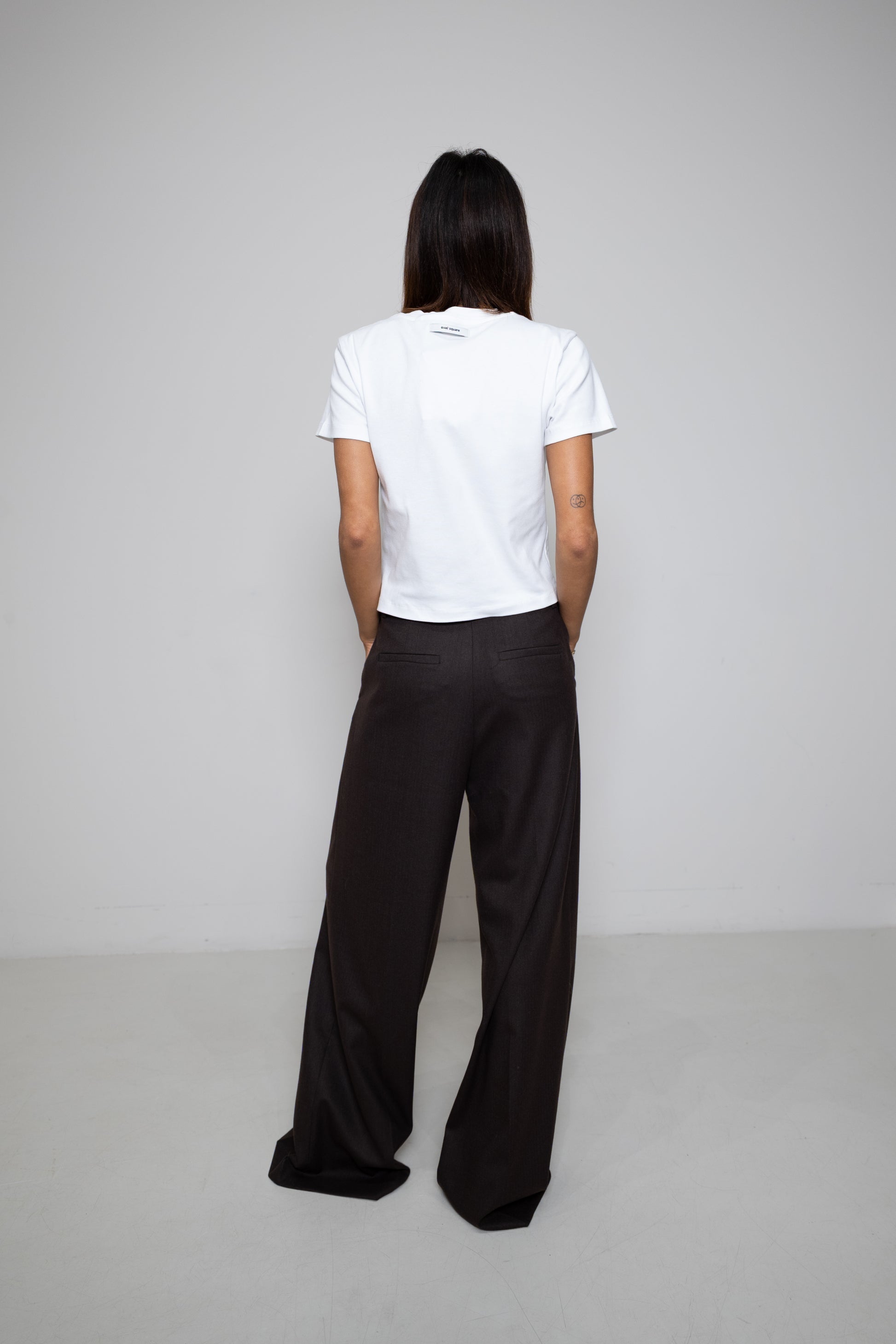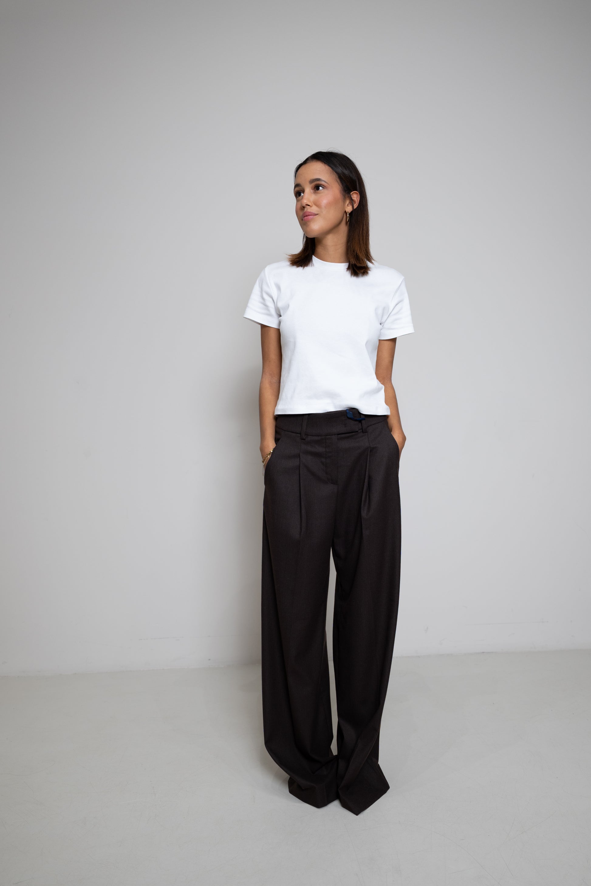 Chrissy ist unserer allerliebste Anzugshose. Sie hat ein weites Bein und einfach Bundfalten, mit ihrem Umschlag am Bund und lässigem Schnitt ist sie sowohl lässig als auch schick kombinierbar.
