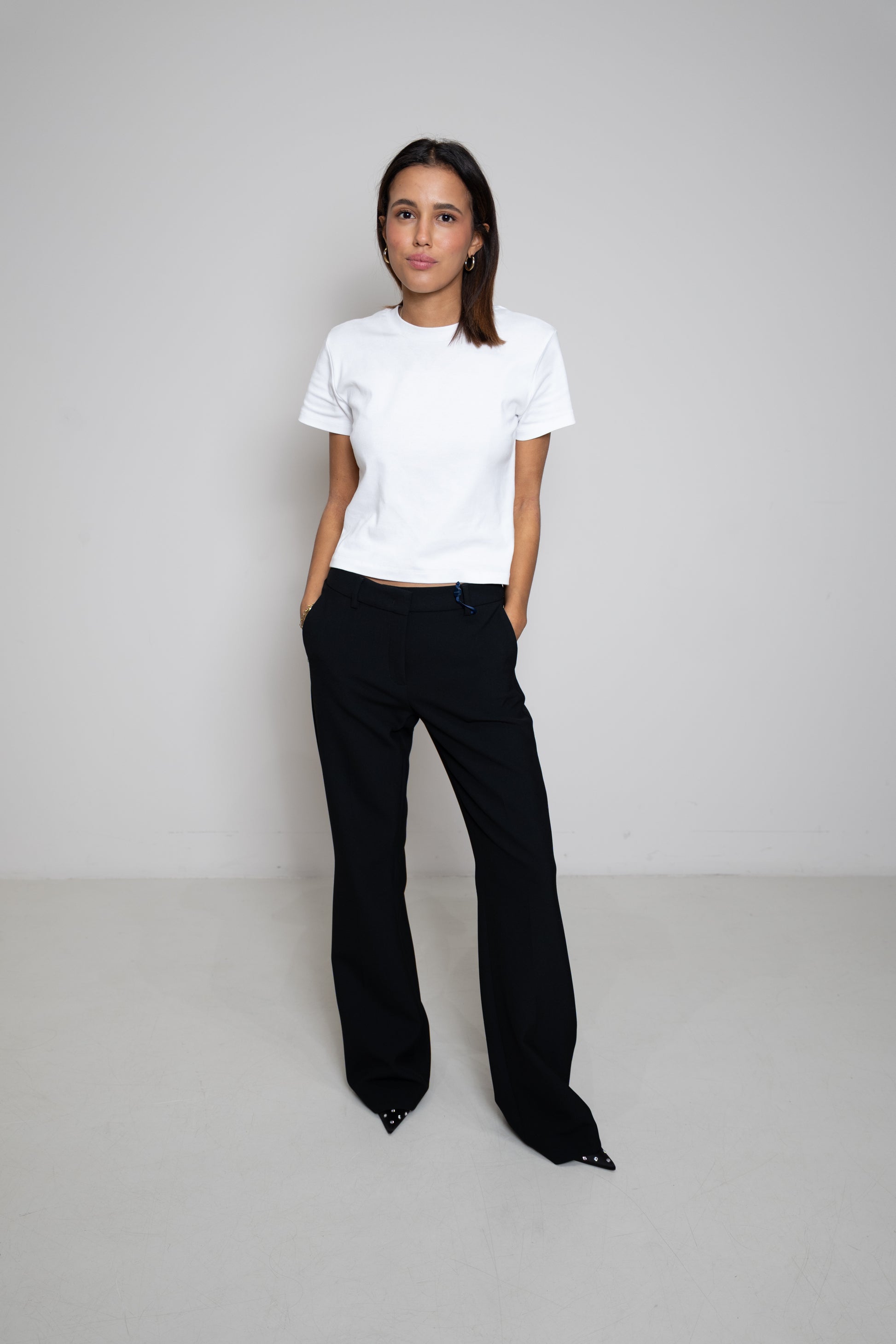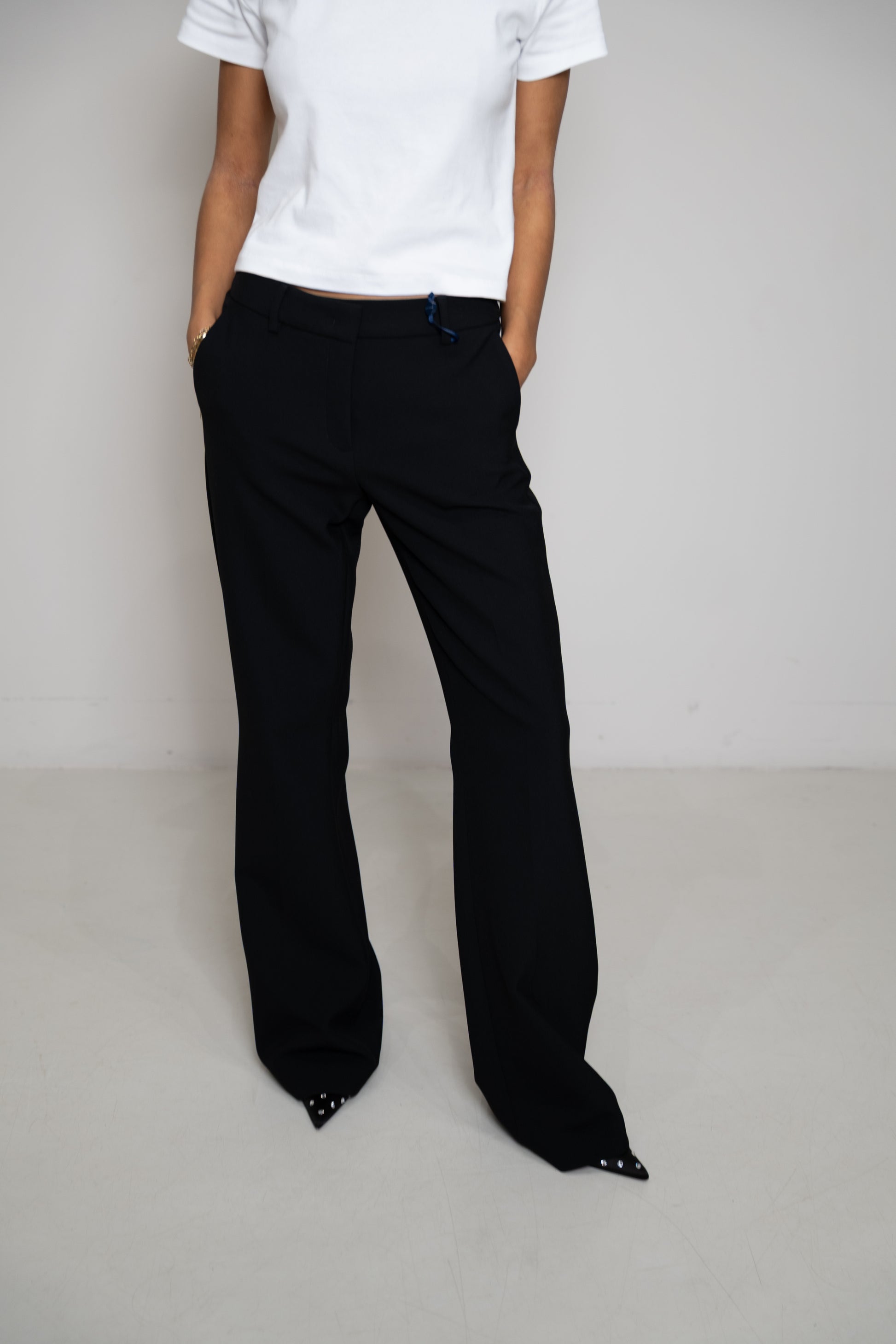 Anzugshose mit hoher Taillie und ausgestelltem Bein.