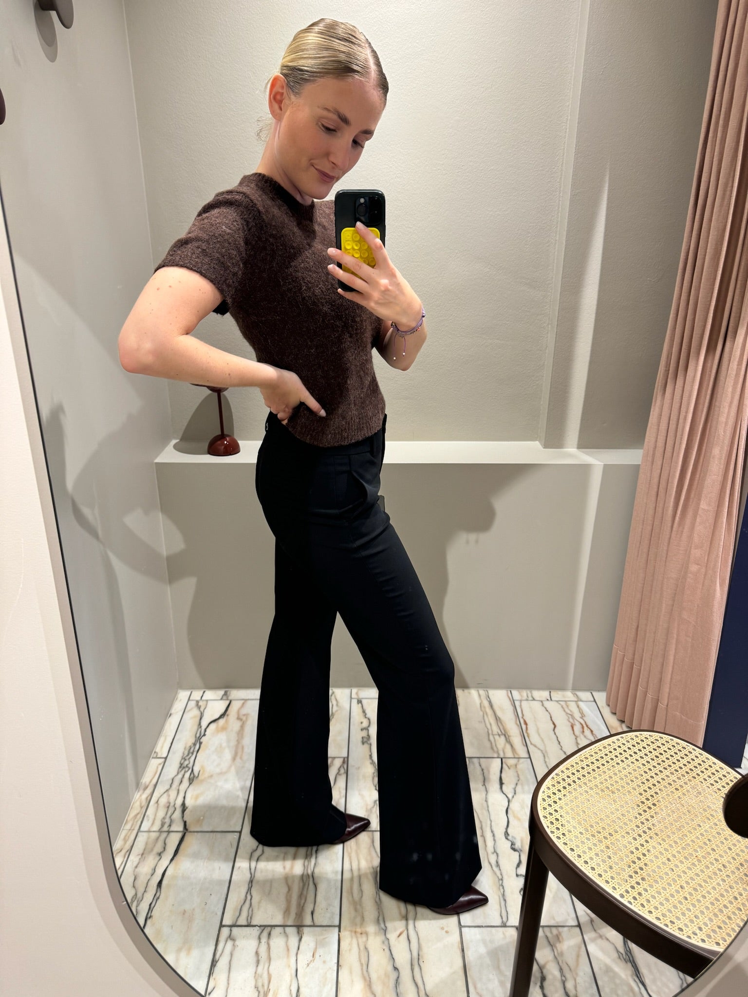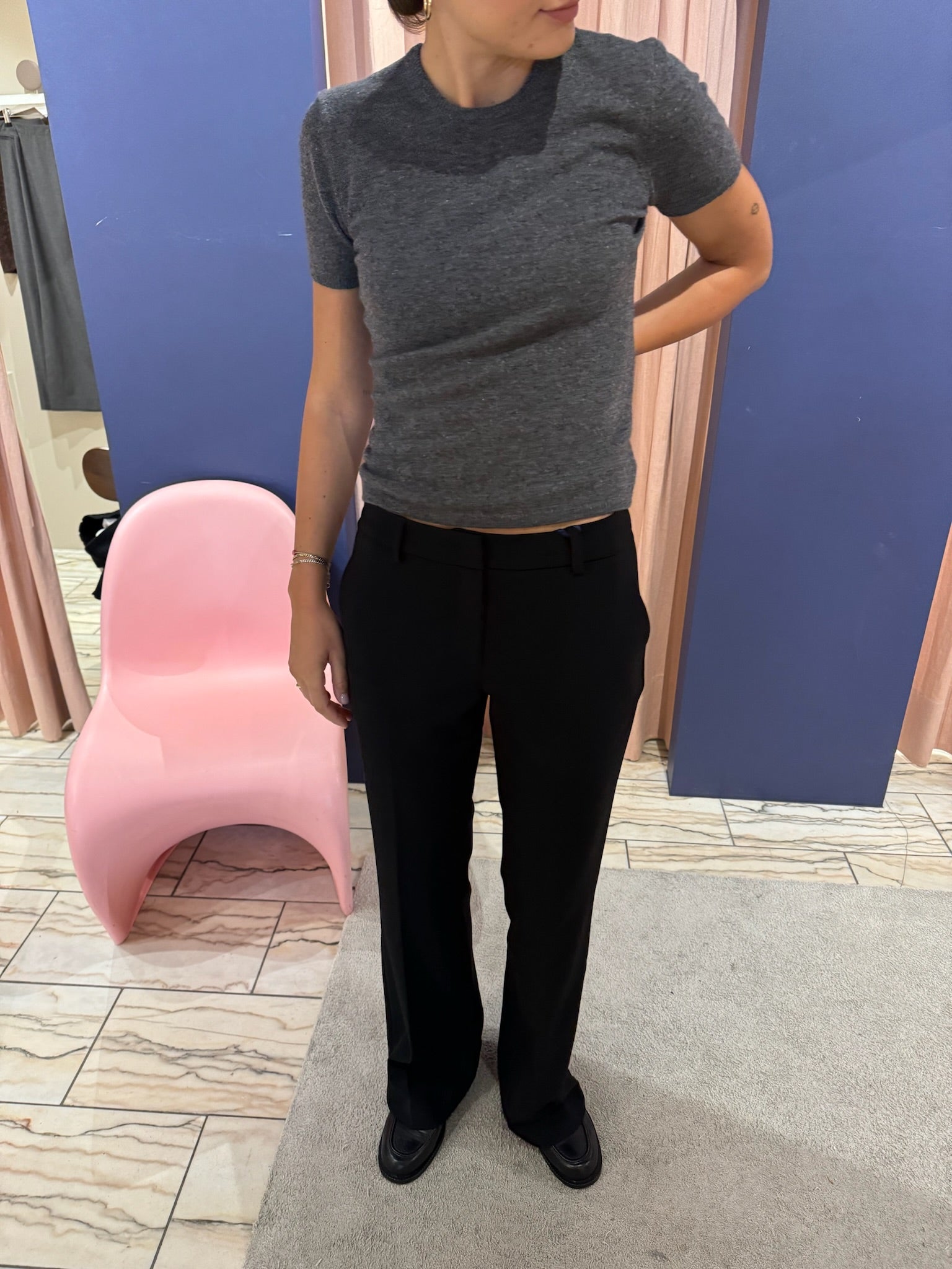 Schmal geschnittene Anzugshose mit leichtem Flare.