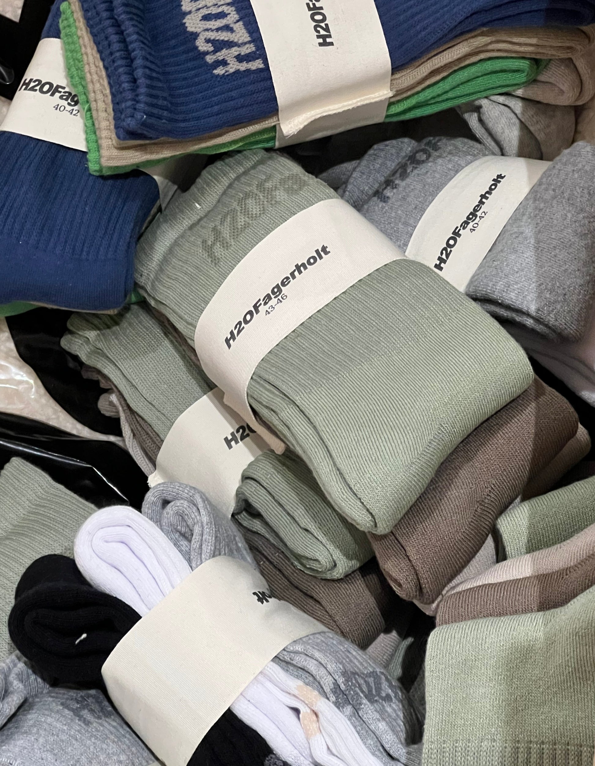Made from a stretchy cotton blend, these classic socks are H2OFagerholt-knitted with black logo lettering and have ribbed cuffs. Wear yours with an oversized shirt, shorts, and sandals.