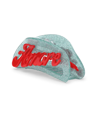 Glitzer Haarspange mit Amore Schriftzug aus Acetat.