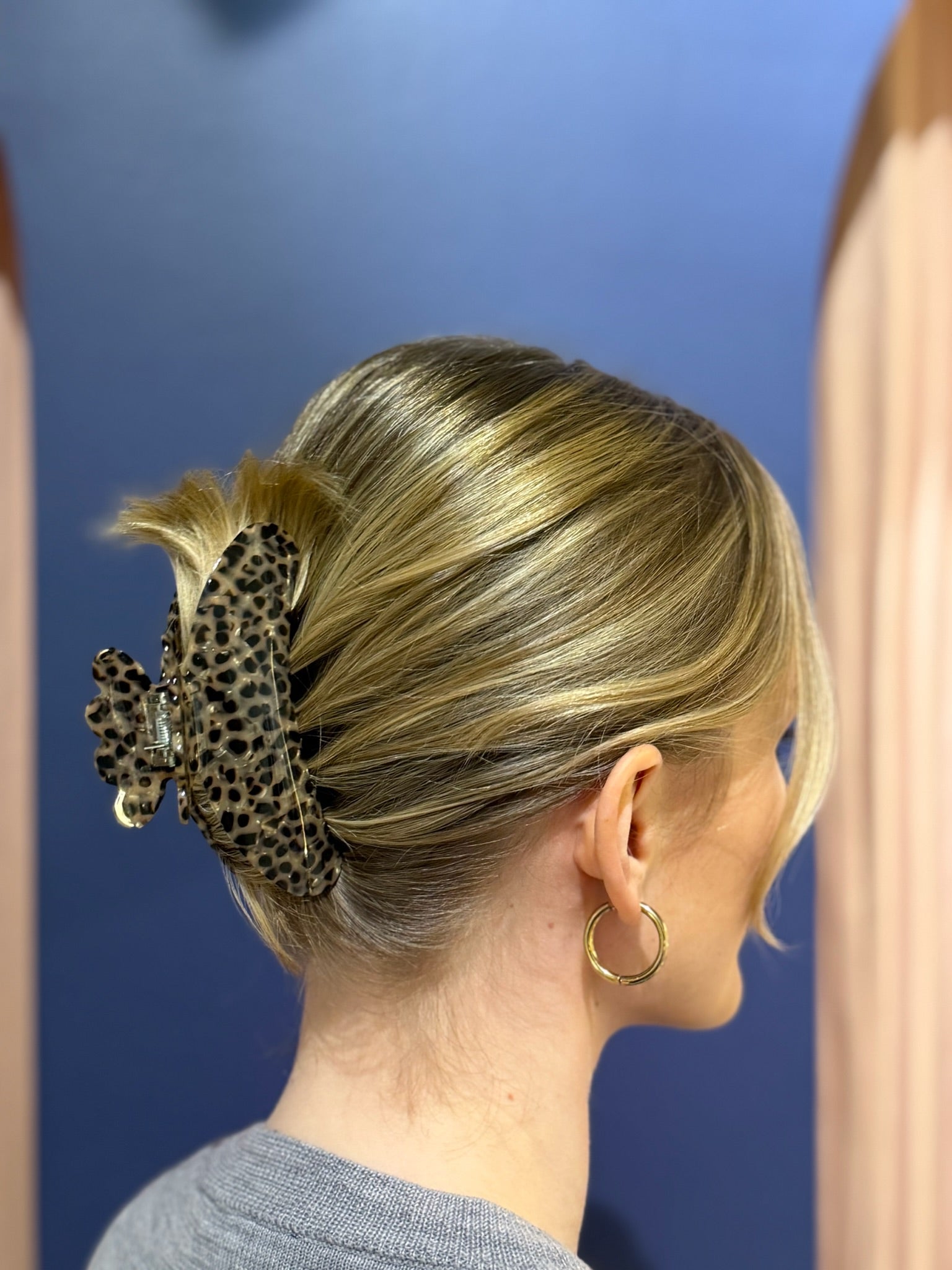Große Haarspange in Leo-Muster.