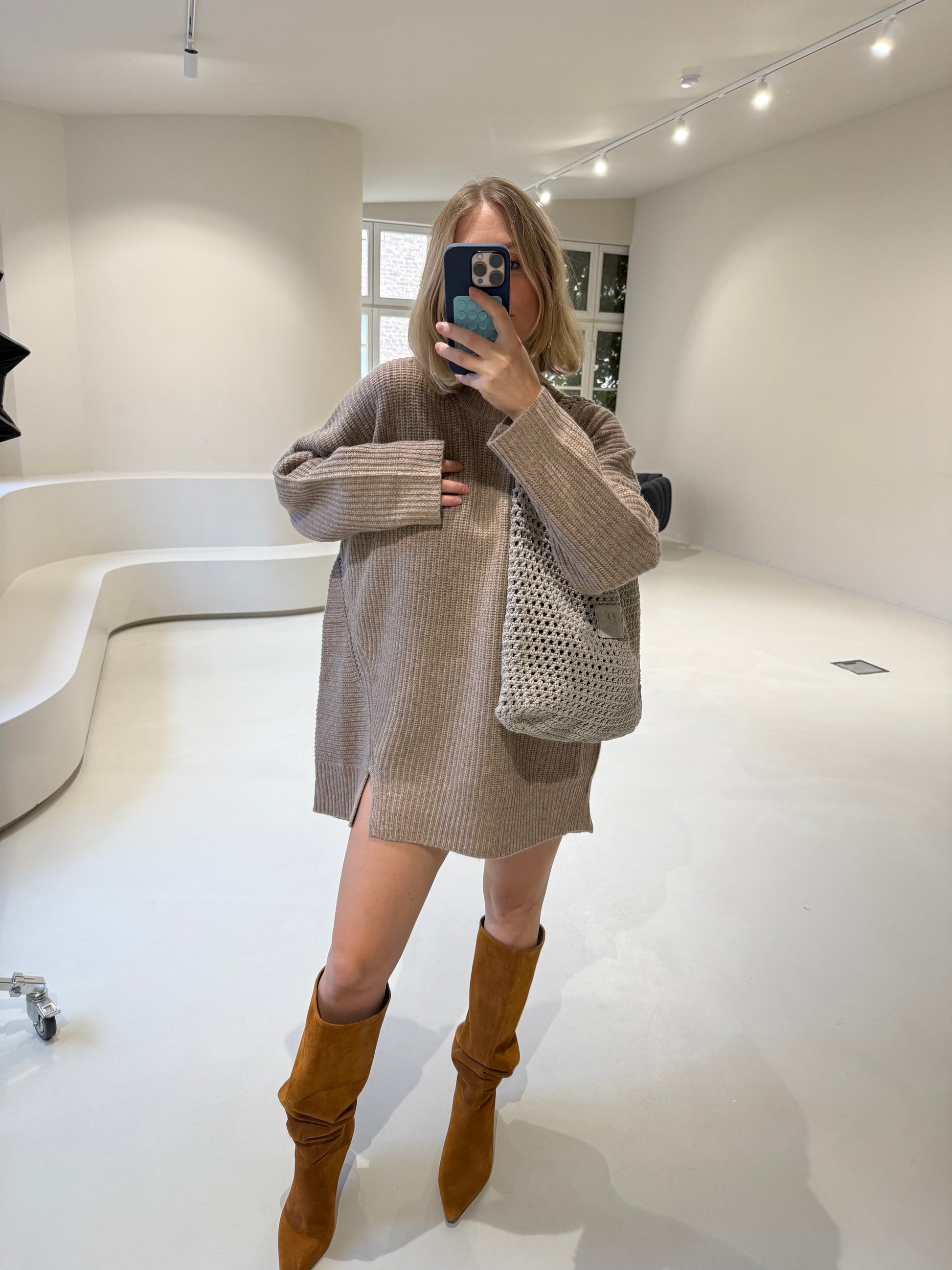 Der Como Giant Sweater ist aus einer weichen Mischung aus Wolle und Kaschmir gefertigt. Mit seiner entspannten, bequemen Passform sorgt er für einen gemütlichen und gleichzeitig stilvollen Look. Perfekt zum Layern und ideal, um legeren Outfits eine elegante Note zu verleihen.
