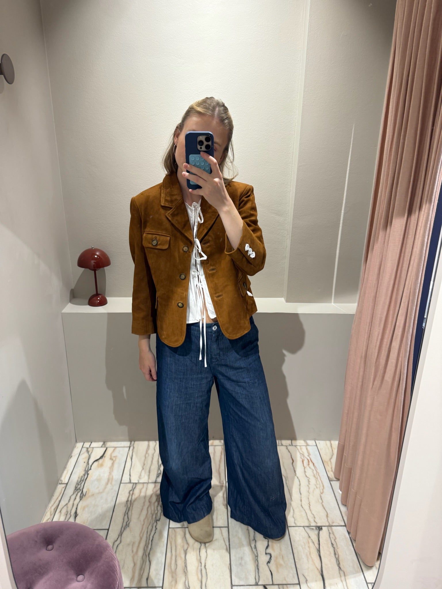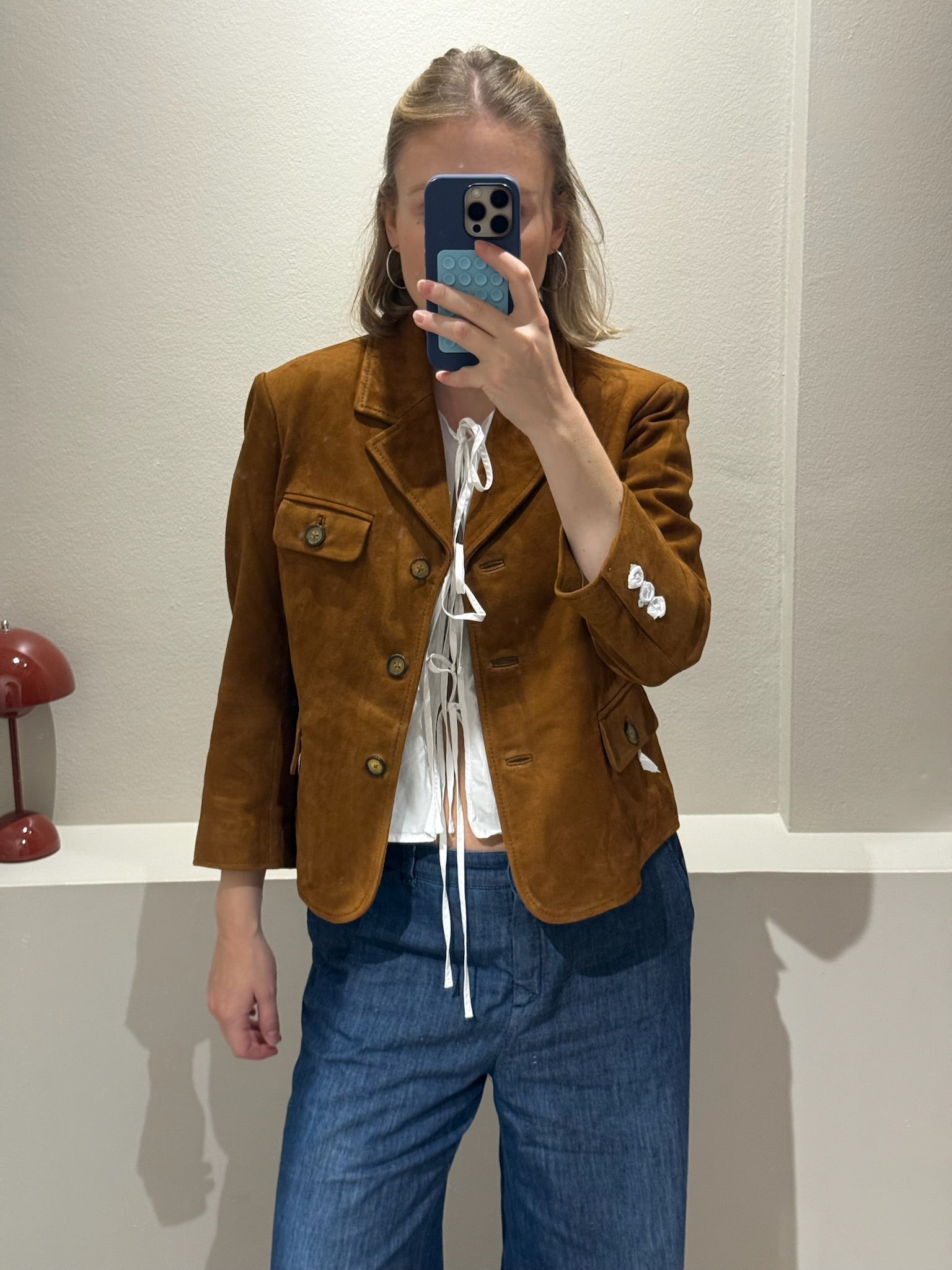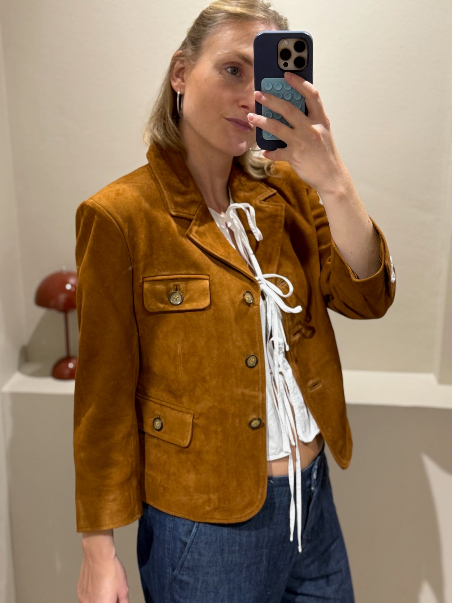 Schmal geschnittene Blazerjacke aus wildleder in schömem Cognac.
